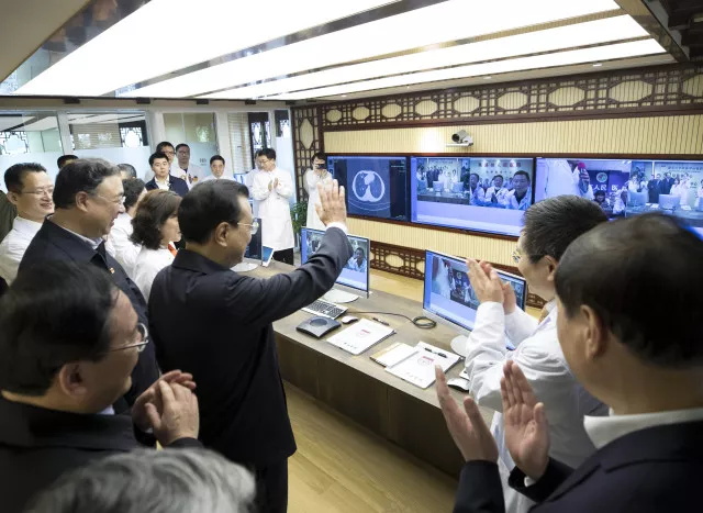 李克強(qiáng)要求優(yōu)先提速遠(yuǎn)程醫(yī)療:讓優(yōu)質(zhì)醫(yī)療資源普惠更多群眾李克強(qiáng)總理4月11日考察上海華山醫(yī)院遠(yuǎn)程會(huì)診中心。通過(guò)互聯(lián)網(wǎng)視頻連線,遠(yuǎn)在青海、云南、新疆的病人在當(dāng)?shù)蒯t(yī)院就能得到上海杰出醫(yī)生的遠(yuǎn)程診療。李克強(qiáng)仔細(xì)詢問(wèn)遠(yuǎn)程醫(yī)療中還有什么困難,幾位醫(yī)生說(shuō),當(dāng)?shù)蒯t(yī)學(xué)影像設(shè)備等條件較差、網(wǎng)速較慢都會(huì)影響遠(yuǎn)程醫(yī)療的實(shí)際效果。李克強(qiáng)說(shuō),遠(yuǎn)程醫(yī)療事關(guān)人民群眾的生命健康,今年中央財(cái)政要在上述兩方面對(duì)中西部等貧困地區(qū)加大硬件投入,電信企業(yè)要優(yōu)先提速遠(yuǎn)程醫(yī)療,用“互聯(lián)網(wǎng)+醫(yī)療”讓優(yōu)質(zhì)醫(yī)療資源普惠更多群眾。