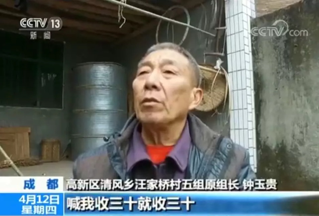 沒能看到發(fā)放化肥的臺賬,暗訪人員找到了汪家橋村五組原組長鐘玉貴,他曾參與了化肥的發(fā)放和收費(fèi)工作。