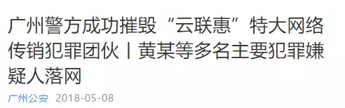 5月8日,廣東省公安廳部署廣州警方開展收網(wǎng)行動,成功摧毀“云聯(lián)惠”特大網(wǎng)絡(luò)傳銷犯罪團(tuán)伙,黃某等多名主要犯罪嫌疑人在行動中落網(wǎng)。