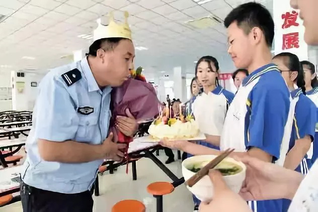 49歲的陜西渭南交警趙增利今年5月剛剛收到了一份特殊的生日禮物,是渭南初級中學(xué)的孩子們送給他的生日蛋糕和鮮花。趙增利在當?shù)亟痪箨牴ぷ?7年。從2015年春季開始,他便承擔(dān)著渭南初級中學(xué)護學(xué)崗的執(zhí)勤。三年多來,他和不少接送孩子的家長成了熟人。“有時下雨,有家長給送傘;夏天天熱,有的家長給送水?!奔议L和孩子的關(guān)心,讓趙增利感動。
