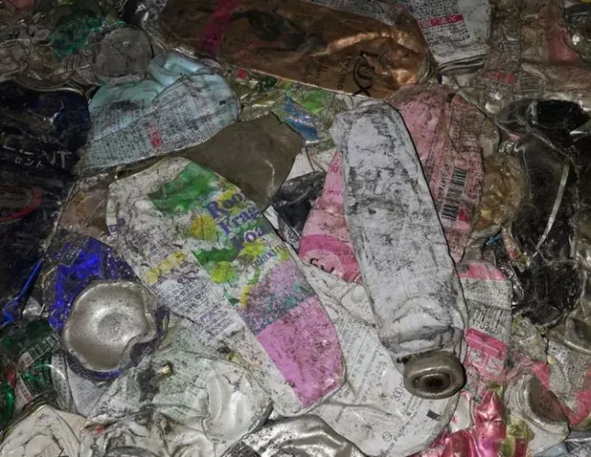 記者跟隨海關(guān)緝私人員在廣東清遠(yuǎn)市郊的一個(gè)倉庫內(nèi)發(fā)現(xiàn),印有一些印有日文、韓文、英文、泰文標(biāo)識(shí)的廢舊鋁罐、銅線、五金廢料種 類繁多,有的散發(fā)出一股刺鼻的味道,表面殘留著粘稠狀不明液體。