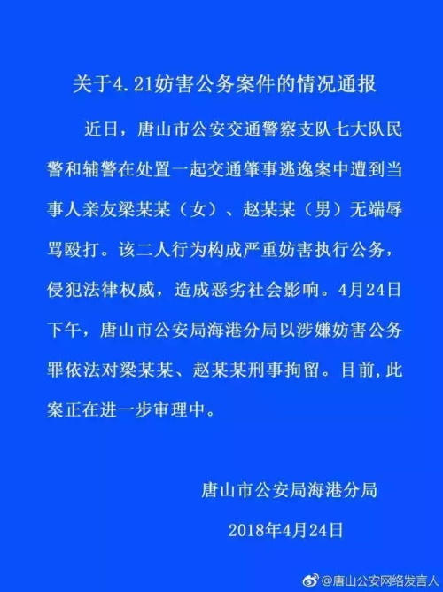 作為公職人員,如此粗暴的阻攔執(zhí)法,這不禁讓人想起一個(gè)月前發(fā)生在唐山的事件。