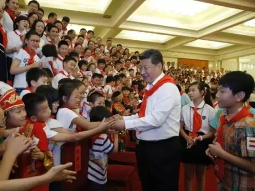 △2015年“六一”國際兒童節(jié),習近平在人民大會堂囑咐“小伙伴”們