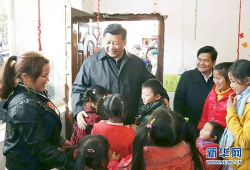 △2015年2月14日,習近平在陜西楊家?guī)X福州希望小學考察。