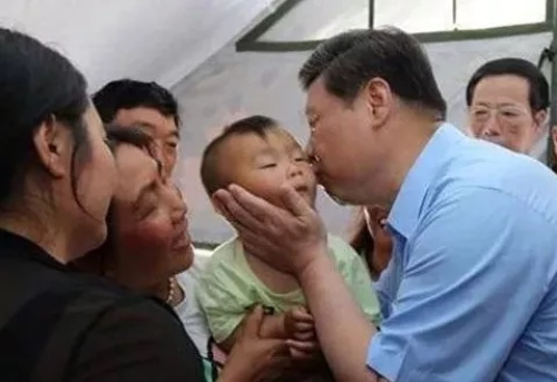 2013年5月21日,習近平到四川蘆山地震災區(qū)慰問受災群眾?!盃敔??!币粴q半的駱俊成奶聲奶氣地喊了一聲,嘟起嘴巴想親親習近平。這時,習近平笑著摸摸駱俊成的臉,親了親他。