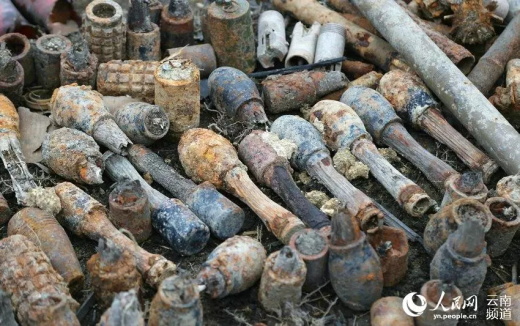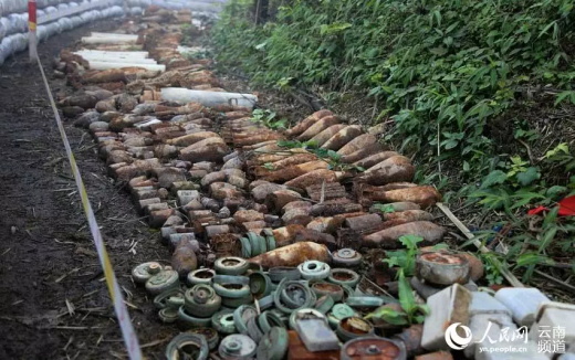 掃雷官兵掃出的爆炸物。人民網(wǎng)虎遵會 / 攝