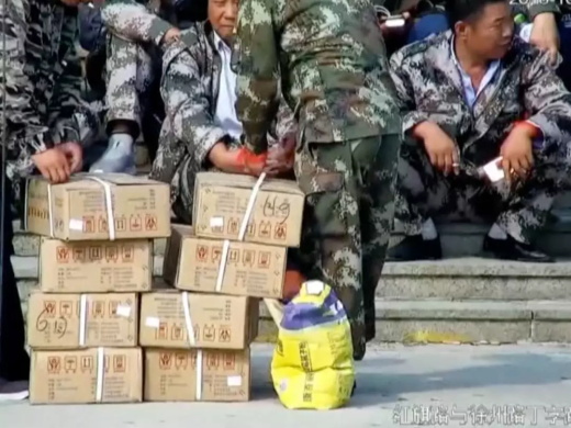 5日14時(shí)36分,平度盧某壽、劉某禮等人雇車將張某美專門購買的105根木棍,含長1.8米的大錘把60根,長1.2米的鎬把45根送到聚集現(xiàn)場。6日13時(shí)43分左右,又將8箱共計(jì)16個(gè)干粉滅火器及一袋膩?zhàn)臃鬯椭辆奂F(xiàn)場。