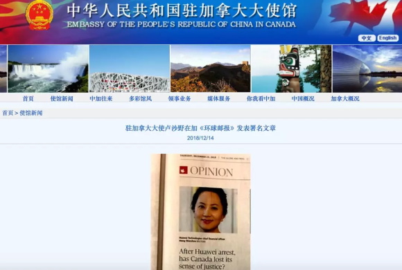 2018年12月13日,中國駐加拿大大使盧沙野在加《環(huán)球郵報》發(fā)表題為《我們不希望看到加拿大走上背離公平正義的道路》的署名文章。全文如下: