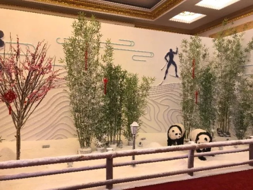 為襯托冬季運(yùn)動(dòng)主題,一向嚴(yán)肅莊重的人民大會(huì)堂西大廳被冰雪元素裝扮一新,中國(guó)的*********和芬蘭的馴鹿在銀裝素裹背景下相映成趣。