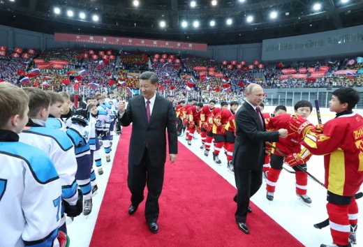 2018年6月,俄羅斯總統(tǒng)普京訪問中國(guó)期間,習(xí)近平同普京在天津共同觀看了一場(chǎng)中俄青少年冰球友誼賽。在體育館里,習(xí)近平和普京同他們逐一擊拳問候,還同他們合影、親切交談,勉勵(lì)他們團(tuán)結(jié)拼搏,以球會(huì)友,賽出友誼,賽出水平,共同提高,通過學(xué)習(xí)交流成為好朋友、好伙伴,做中俄友好合作事業(yè)的接班人。