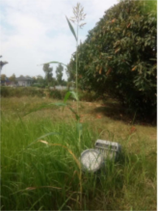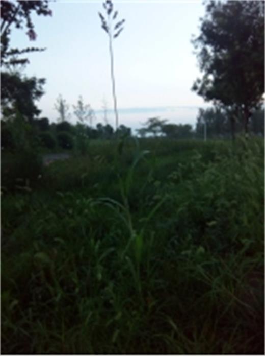 此處有個(gè)“土丘”,1~3號(hào)植株都是在這里發(fā)現(xiàn)的。7月16日在土丘西邊與1號(hào)(圖1)邂逅相遇,覺得它與普通高粱迥然不同,17日拍照并測(cè)量了數(shù)據(jù),18日就被割草機(jī)割掉了。17,18日2d還發(fā)現(xiàn)3棵幼苗,也是第2天就被割草機(jī)割掉了。8月1日我又在土丘北半坡上找到2號(hào)植株(圖1),它比1號(hào)稍高,形態(tài)非常相似。它的籽粒已經(jīng)硬化,呈黑褐色,它是這次考察中生存時(shí)間***長(zhǎng)(5個(gè)多月)、結(jié)穗***多(4個(gè))的。8月17日,在西邊一片草坪上發(fā)現(xiàn)了6棵。其中,3號(hào)(圖1)是這次考察中***茁壯的,其穗子碩大、籽粒飽滿,估計(jì)穗粒數(shù)在700~1000粒。這些苗的生長(zhǎng)期到10月3日,只有60d左右。這一帶的11棵,***后只剩下2,3號(hào)僥幸存活了下來。其他的不是被割草機(jī)割掉就是被游人拔掉了。