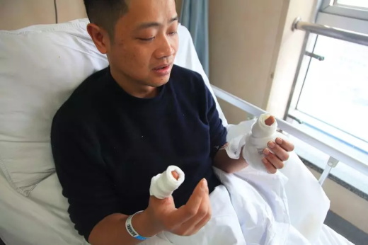 看到危機(jī)解除,吳方健松了一口氣,這才發(fā)現(xiàn)雙手的大拇指被切斷一半,手指下垂,虎口處血流如注,傷口深可見骨?,F(xiàn)場(chǎng)民警立即駕駛警車將吳方健送到醫(yī)院。