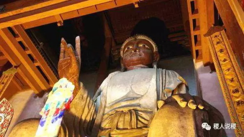 從稷王廟出來(lái)后,李自成又登高拾階,來(lái)到了佛教名勝寶地大佛寺。寺中方丈和眾僧聽(tīng)說(shuō)闖王要來(lái),早就伺立寺外相迎。李自成看到高大瑰麗的土雕大佛后,贊嘆不已。正當(dāng)他準(zhǔn)備燒香跪拜時(shí),手下大臣攔住了李自成,說(shuō)道:“自宋太祖之后,歷代皇帝到廟中燒香,都不拜佛?!币?yàn)樗翁娴较鄧?guó)寺拜佛燒香時(shí),寺中長(zhǎng)老曾講“現(xiàn)在佛不拜過(guò)去佛?!边@本是迎合皇上心意的話,但宋太祖卻把作為國(guó)規(guī),認(rèn)為合乎禮儀。但是,也有隨軍大臣堅(jiān)持講:應(yīng)該跪拜,保佑我闖王大軍永不言敗。