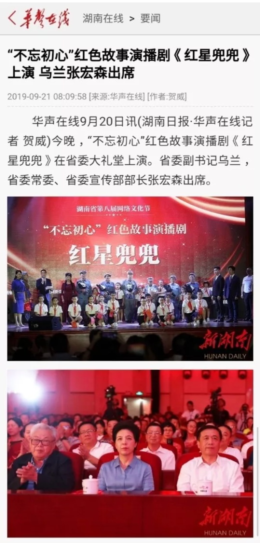 湖南省第八屆網(wǎng)絡(luò)文化節(jié)“不忘初心”紅色故事演播劇《紅星兜兜》傾情上演。