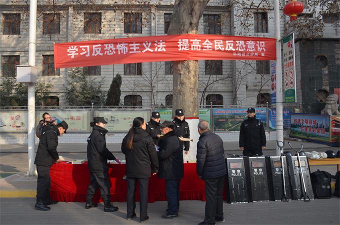 活動(dòng)當(dāng)天,教育、衛(wèi)計(jì)、城建、汽車站等所有成員單位,還在電子屏上滾動(dòng)播放反恐標(biāo)語(yǔ)、懸掛警示橫幅、張貼防范***恐襲擊宣傳海報(bào),進(jìn)一步營(yíng)造了濃厚氛圍。