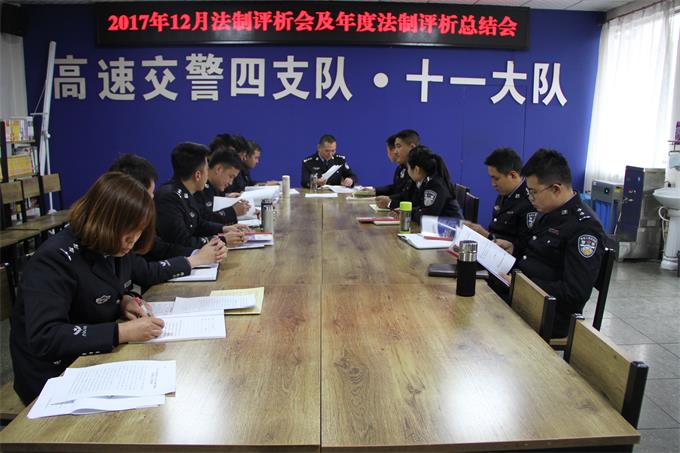 為進(jìn)一步提高執(zhí)法案卷質(zhì)量,規(guī)范執(zhí)法程序,******提高隊(duì)伍依法行政的工作水平,高速四支隊(duì)十一大隊(duì)以執(zhí)法案卷評析為抓手,落實(shí)執(zhí)法案卷評析工作制度化、常態(tài)化,取得了良好的效果。2018年1月2日下午,大隊(duì)組織2017年12月法制評析及年度法制評析總結(jié)會。