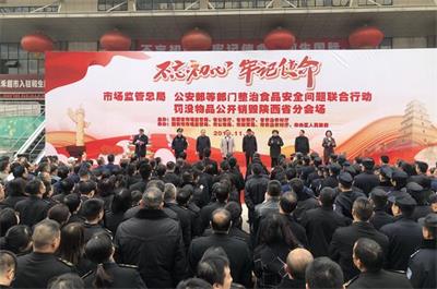11月20日,按照******市場監(jiān)管總局、公安部、教育部、農業(yè)農村部整治食品******問題聯(lián)合行動統(tǒng)一部署,陜西省作為全國10個分會場之一,在西安和生國際商品交易中心南廣場,舉行整治食品******問題聯(lián)合行動罰沒物品公開銷毀現(xiàn)場會,依法對查處的涉及肉制品、保健食品、假酒、食用油、農產品等10余類520余種50多噸,貨值1580萬元的罰沒物品進行集中銷毀。