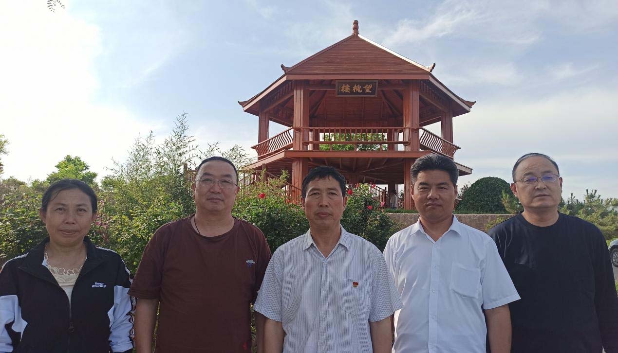 圖為:三路里村書記呂建波陪同朋友參觀萬畝槐米基地