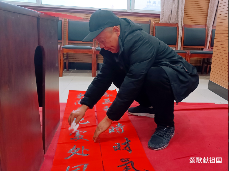 現(xiàn)場,人頭攢動,共有來自崇相西社區(qū)6位書法家和書法愛好者揮毫潑墨為居民抒寫春聯(lián)。一副副精美的春聯(lián),傳遞著辭舊迎新的美好愿景,寄托著人們對龍年新春的憧憬與向往。八百幅預(yù)置春聯(lián)宣紙,不到下午四點就已經(jīng)空空如也。