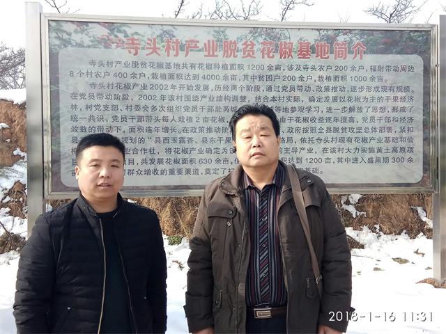 在做好黨建工作的基礎上,為切實落實扶貧目標,徹底擺脫寺頭村后進局面,經多方奔跑,與村兩委成員集思廣益、尋求發(fā)展路子。一是調整產業(yè)結構,寺頭村位居山區(qū)人少地多,傳統(tǒng)有種植花椒的習慣,近年來花椒經濟林發(fā)展迅速,2015年前種植花椒經濟林400余畝,有花椒種植合作社一家,由于管理技術落后,農民粗放經營,種植效益一直不高,到村后針對這一情況,天江多次聯(lián)系縣果業(yè)局技術專家到村舉辦花椒種植科技培訓3次,積極組織36名貧困戶先后到絳縣、陜西等地參觀學習了核桃花椒等******栽培管理技術。同時自己利用自身人脈關系積極向外溝通聯(lián)系尋求花椒銷售渠道與深加工增值,經聯(lián)系2015年陜西一泡菜公司先后到該村高價收購綠椒5噸,芮城一家企業(yè)已與我村達成了花椒深加工合作意向。通過利益誘導、示范引導,村民花椒種植技術提升,種植管理積極性高漲,2015年秋栽植花椒經濟林510畝,為寺頭村經濟持續(xù)發(fā)展打下了堅實基礎。二是規(guī)劃旅游發(fā)展藍圖。寺頭村依山傍水,千年古槐、黃河浮橋、優(yōu)美山川、田園風光組成了一幅濃墨重彩的水墨畫,且又有省級文物保護單位元代關帝廟一座,旅游資源極為豐富,旅游開發(fā)具有明顯的資源優(yōu)勢。經充分調研、多方溝通征求意見,曹川鎮(zhèn)政府已將寺頭村納入了以朱德故居、龍陡峽等為基礎的曹川二日游整體規(guī)劃。